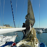 Ayer sábado salimos a probar las velas nuevas por la zona del puerto, e izamos el foque medio y el asimétrico, para probar el nuevo botalón. El asimétrico es realmente enooorme, y nos hizo navegar a un ritmo espectacular. También fue espectacular lo que se doblaba el botalón cuando todo ese trapo tiraba de él hacia arriba... habrá que ver cómo se refuerza ese montaje...